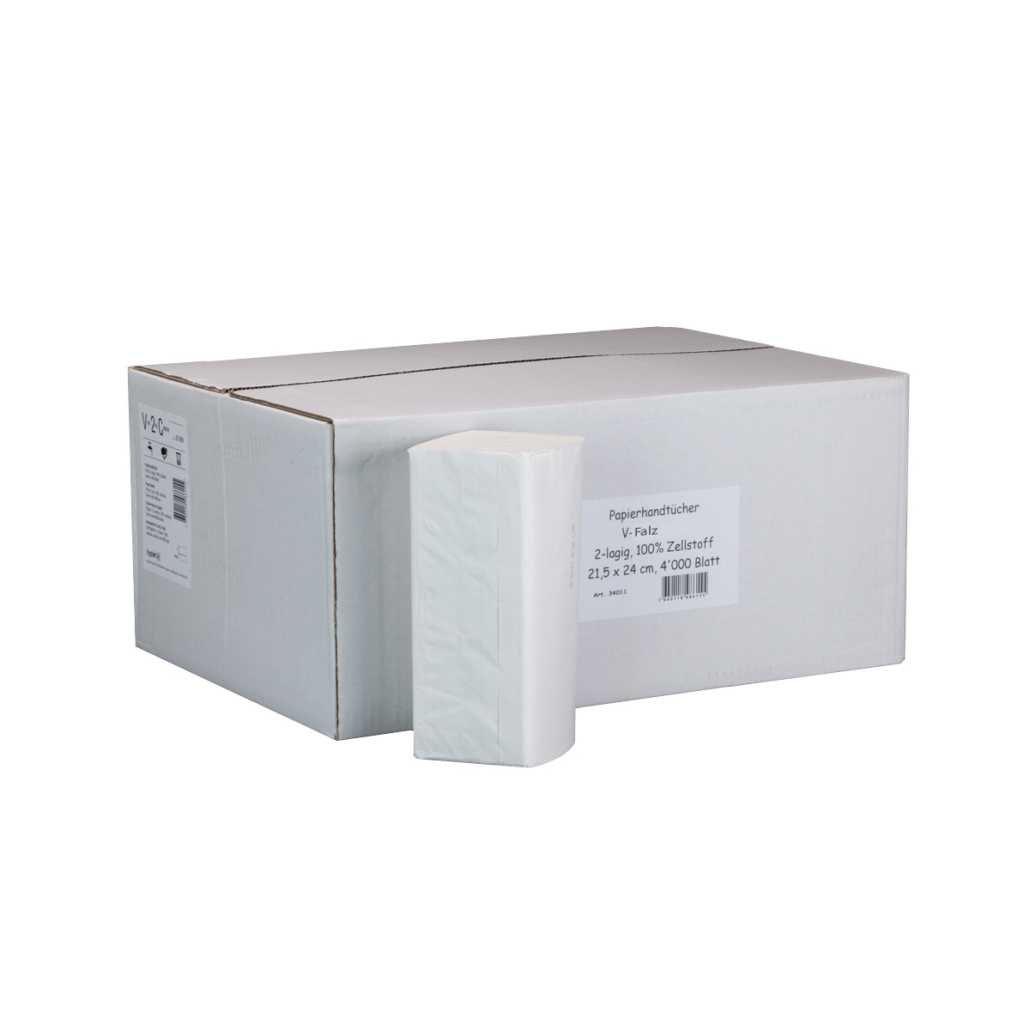 2-ply V-fold hand paper towels from 100% cellulose (20 bundles à 200 sheets, total 4’000 sheets)