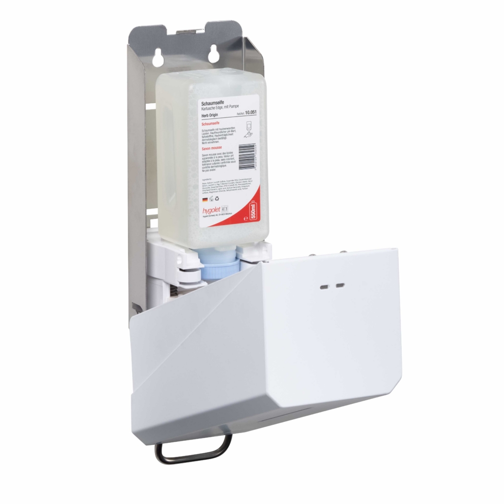 Distributeur de savon en acier inoxydable revêtu par poudre pour cartouches de savon liquide/savon mousse/désinfectant de 550 ml