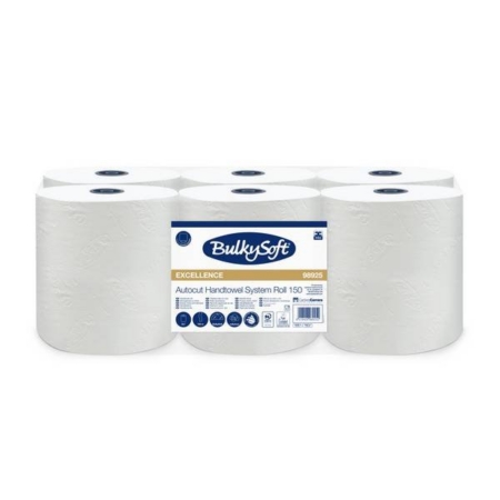 • Papierrolle, 3-lagig, 150 m, Zellstoff, BulkySoft Autocut, Membrane Plus Light, 6 Rollen